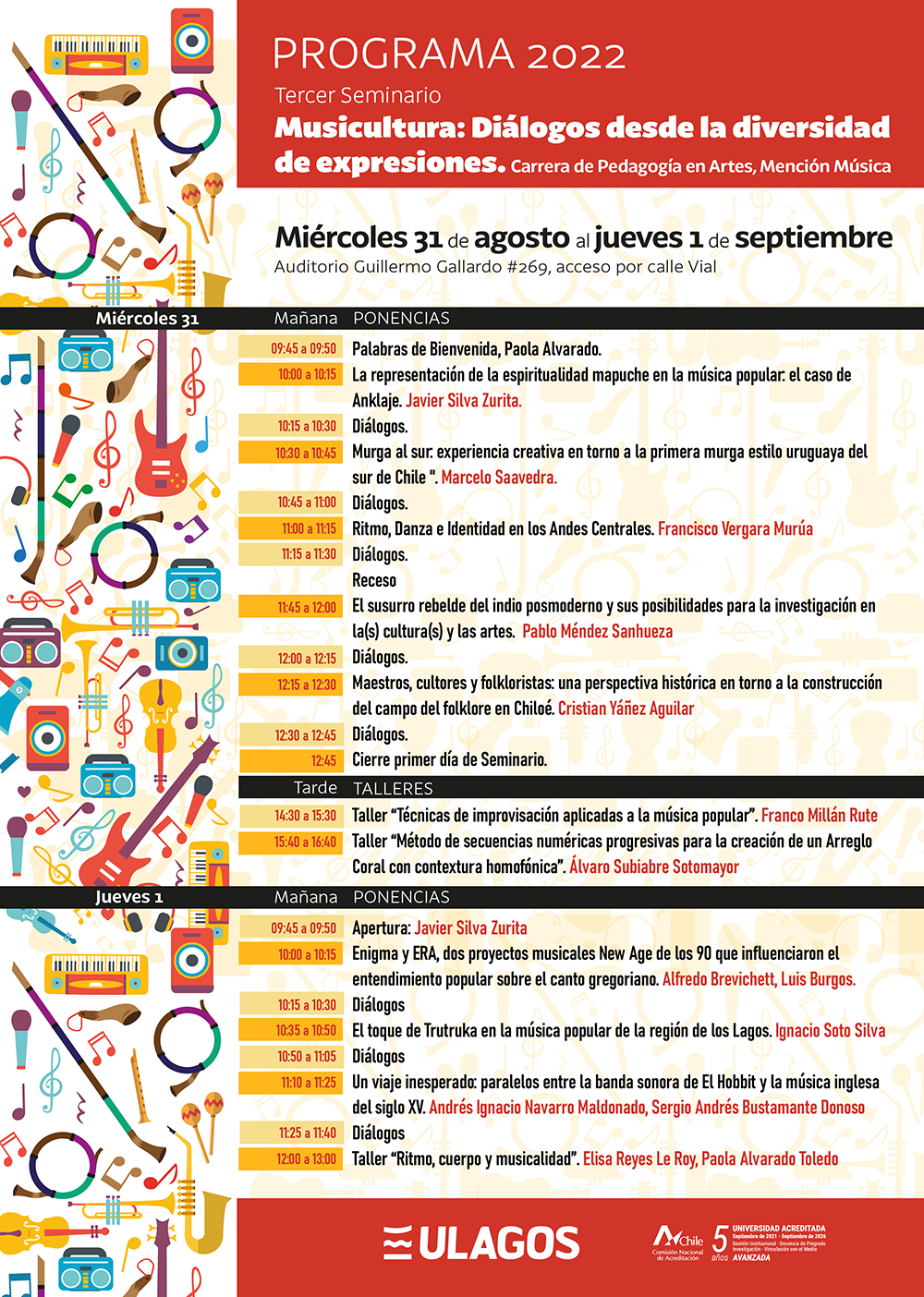 La Carrera de Pedagogía en Artes con Mención Música invita al Tercer Seminario de Musicultura : Diálogo desde la diversidad de expresiones
